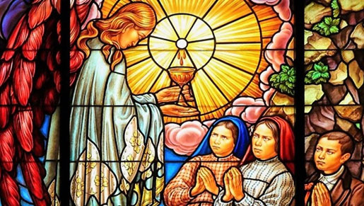 On one occasion, the three children saw the angel prostrate himself before a Host and chalice which was suspended in the air. Worshipping the Holy Eucharist, the angel from Heaven prayed:
